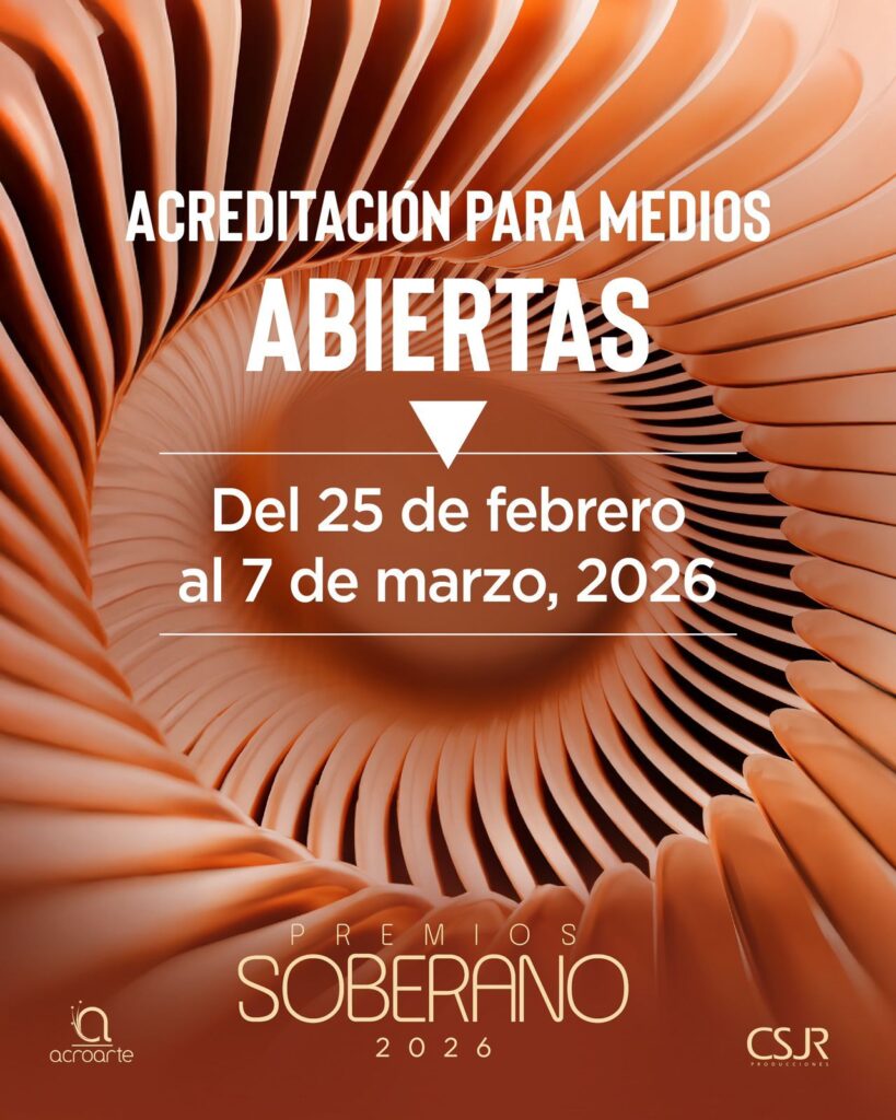 Santo Domingo.– La Asociación de Cronistas de Arte (Acroarte) anunció la apertura del proceso de acreditación de prensa para la cobertura de la gala de los Premios Soberano 2026. El proceso está habilitado desde este 24 de febrero hasta el 7 de marzo.